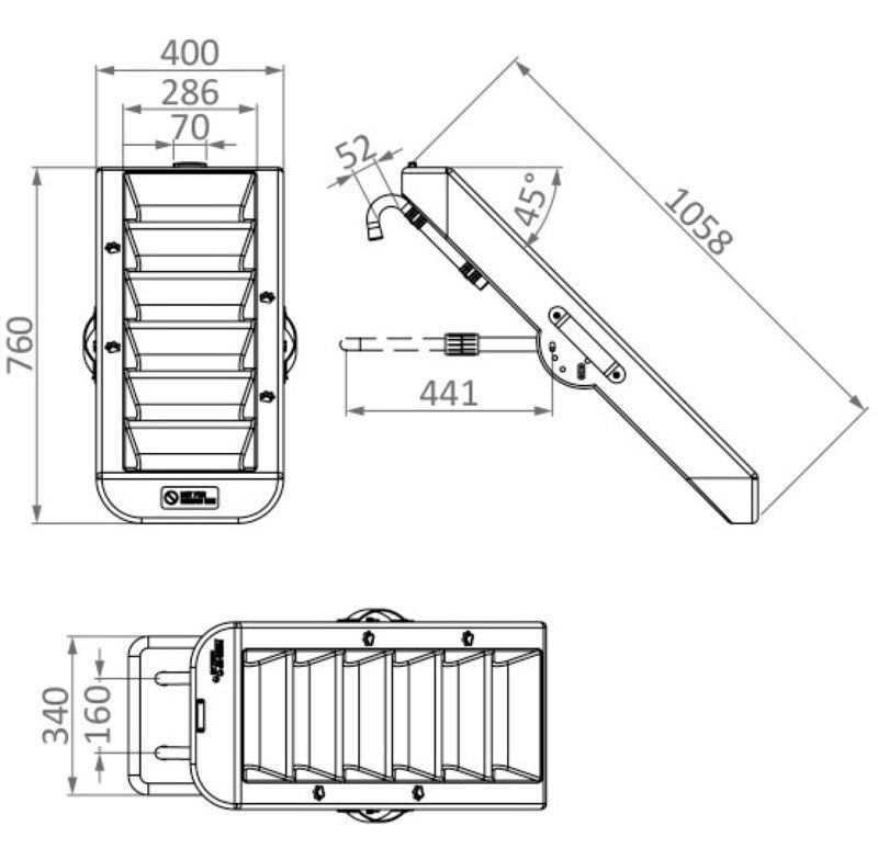 Die in 3 Positionen verstellbaren Ausziehrohre gewährleisten die richtige Neigung.
