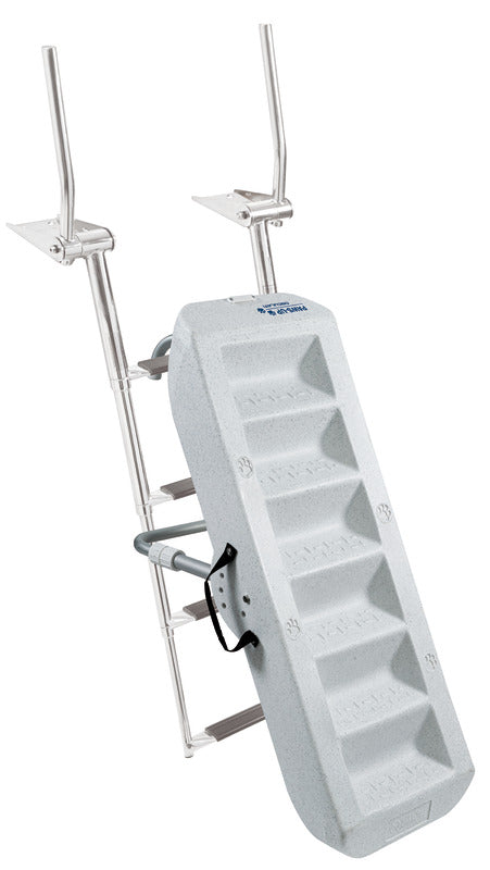 Leicht, rutschfest, kann in wenigen Sekunden auf bereits vorhandenen mindestens Badeleitern mit mindestens 3 zwischen 38 und 57 mm breiten Stufen angebracht und entfernt werden.