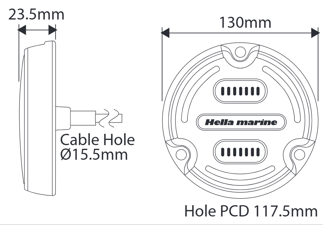 HELLA APELO A3 Bronze, nicht für Aluminiumrümpfe. Bis zu 6000 Lumen.