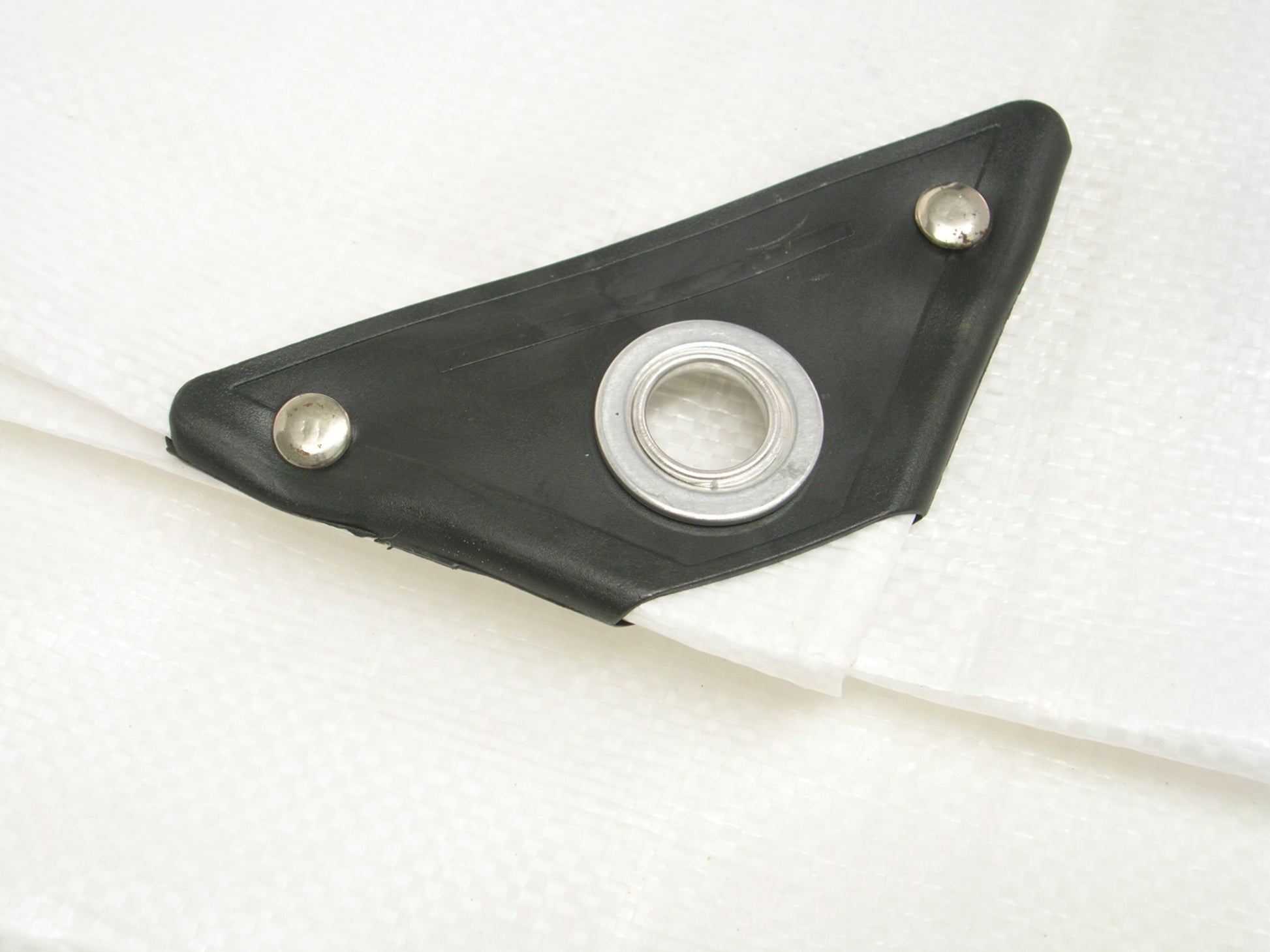 Das Material wird auf das "Schnittmaß" zugeschnitten. Danach werden die Kanten für eine höhere Haltbarkeit umgeklappt und die Ösen eingeschlagen. Dadurch ist die effektive Planengröße etwas geringer als das hier angegebene Schnittmaß.