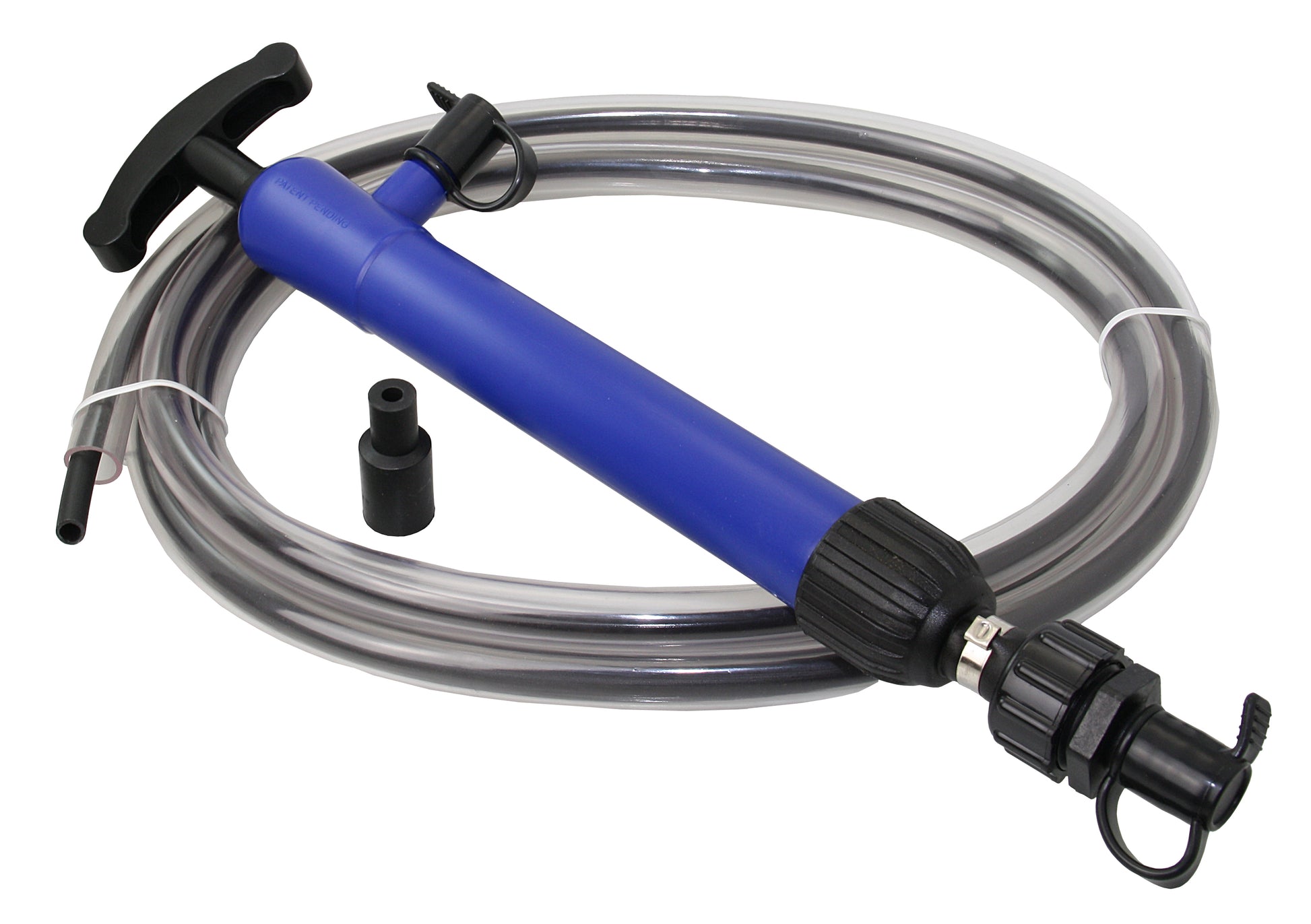 Ölpumpe mit Schlauch. Die Ausführung mit Kanister besitzt eine Aussparung am Kanister zum sicheren Verstauen der Pumpe.
